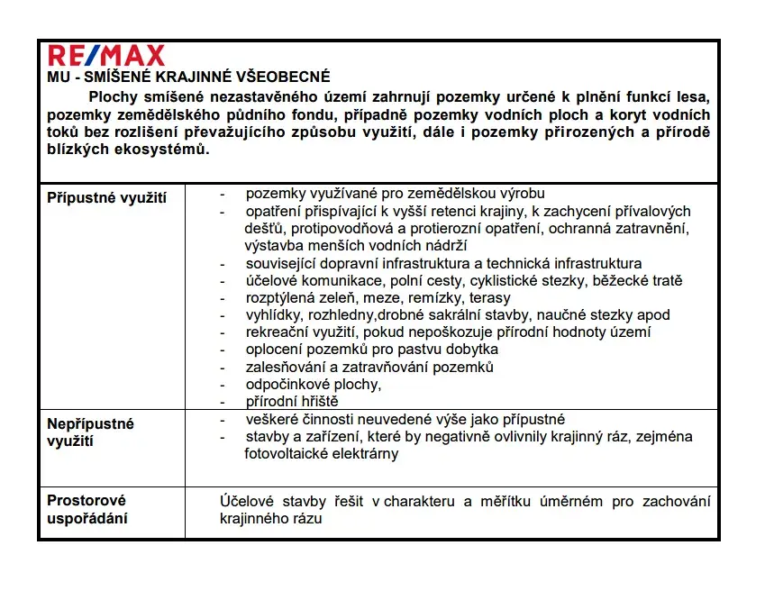 Přípustné využití ploch HU - Výrobní a skladovací objekty; Komunikační a přístupové plochy a nezbytné parkovací plochy; Výrobní služby, opravárenské a servisní provozy, související služby apod.; Související komerční vybavenost (administrativa, stravování, sociální a jiné vybavení sloužící firmě apod.); Zařízení technické infrastruktury, technických objektů, fotovoltaické a větrné elektrárny; Sběrné dvory, recyklační plochy odpadů apod.; Komunikační a přístupové plochy a nezbytné parkovací plochy; Zeleň; Hromadné garáže; Čerpací stanice pohonných hmot; Pohotovostní bydlení v rámci objektů hlavní funkce.