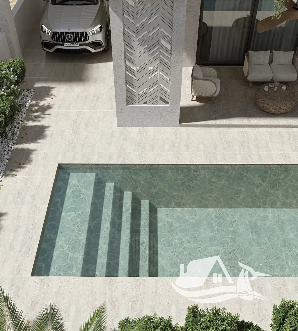 Vily jsou navrženy v elegantním minimalistickém stylu s použitím přírodních barev, dřeva a kamene, které společně vytvářejí harmonické a nadčasové prostředí pro život i odpočinek.