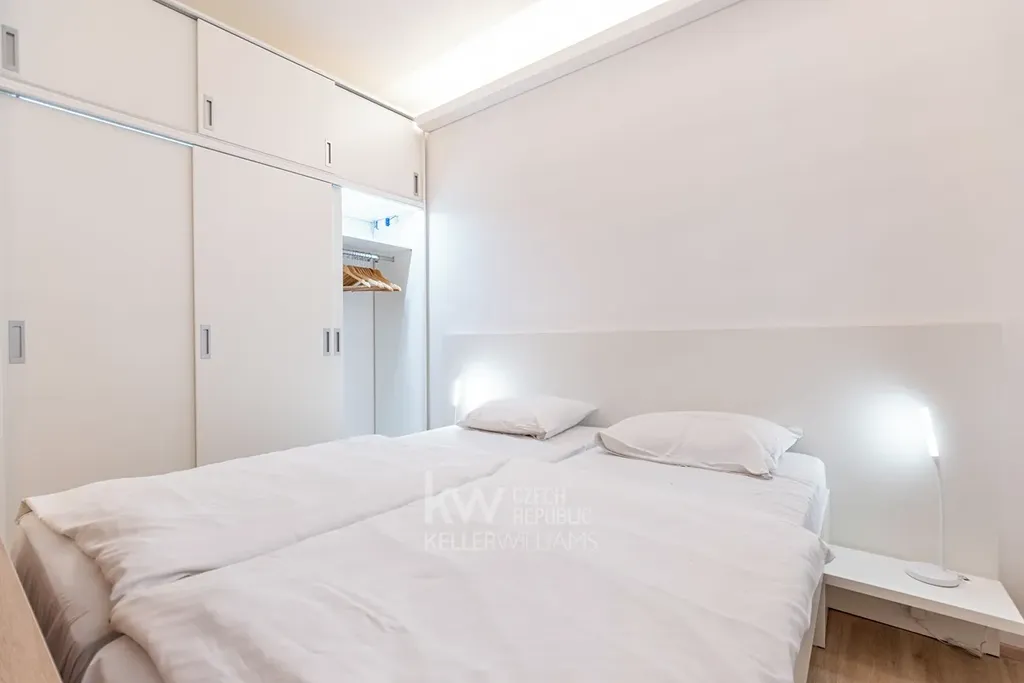 V krásné prvorepublikové vile k pronajme plně vybavený byt 1+kk hned vedle parku a divadla Na Jezerce. Tento útulný suterénní byt je po rekonstrukci z roku 2020 a je vybaven kuchyňskou linkou včetně lednice s mrazákem, varnou deskou, mikrovlnkou, a základním kuchyňským vybavením (příbory, talíře atd.). V koupelně je sprchový kout, WC, vyhřívaný žebřík a fén. V chodbě nalezneme prostorné vestavěné skříně s LED osvětlením. Samotný pokoj je vybaven televizí se satelitním příjmem, WIFI připojením, stolem, židlemi a postelí.