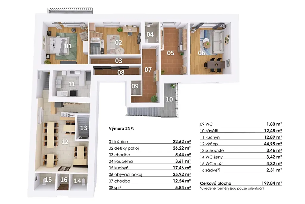 Technické a provozní zázemí: salonek restaurace, několik skladů, úklidová místnost, WC, kotelna, uhelna a další prostory s širokým potenciálem – vhodné pro rozšíření obytné kapacity, wellness nebo podnikání.
