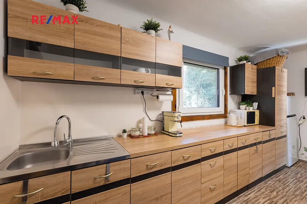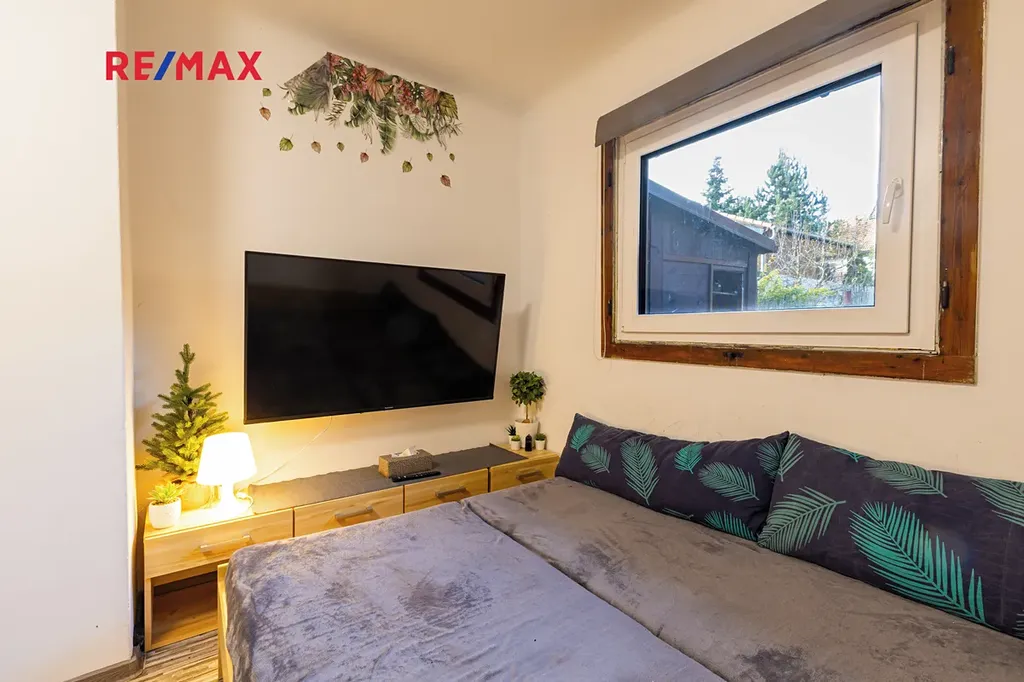 Na pozemku se v současné době nachází pěkná udržovaná chata, která je součástí prodeje. Chata je postavená na podezdívce, dřevěná, ale zateplená foukanou izolací, plastová okna s dvojskly. Střecha je nová z kanadského šindele taktéž zateplená foukanou izolací. Chatu lze využít i pro trvalé bydlení. Na 60 m2 je dispozice 3+1 a koupelna s vanou. Voda je do chaty rozvedená ze studny, voda i odpady jsou v plastu, elektřina 3x25A v mědi. K chatě patří ještě dílna.