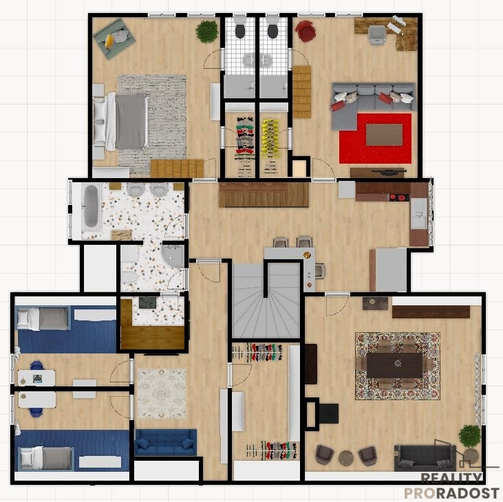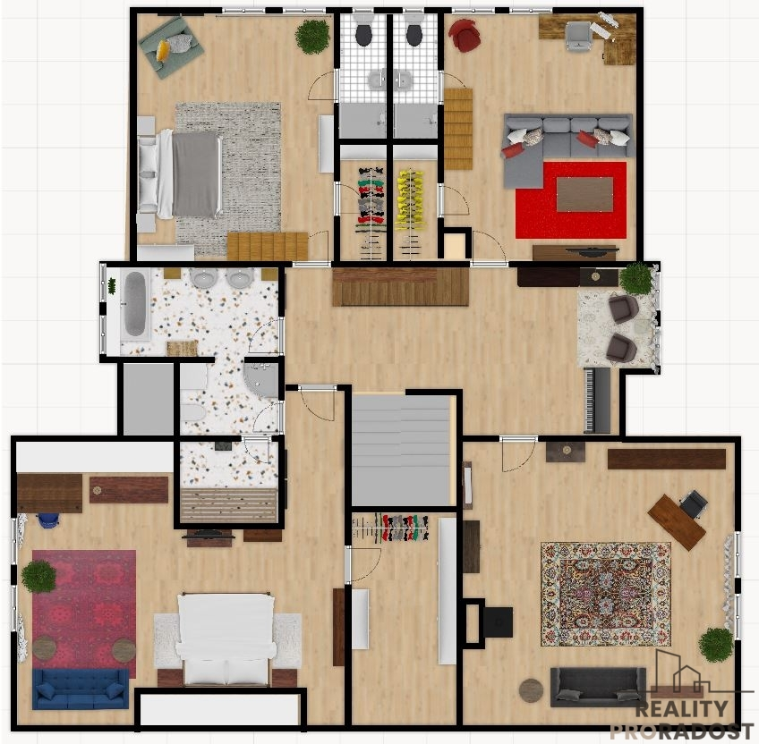• velkorysý byt v patře o velikosti cca 183 m² s mezonetovými pokoji, saunou a dalším užitným podlažím