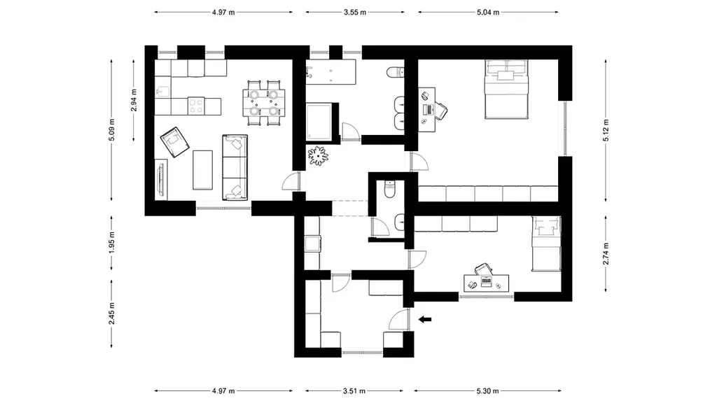 Na fotkách můžete vidět půdorys vypracovaný podle studie možných úprav.