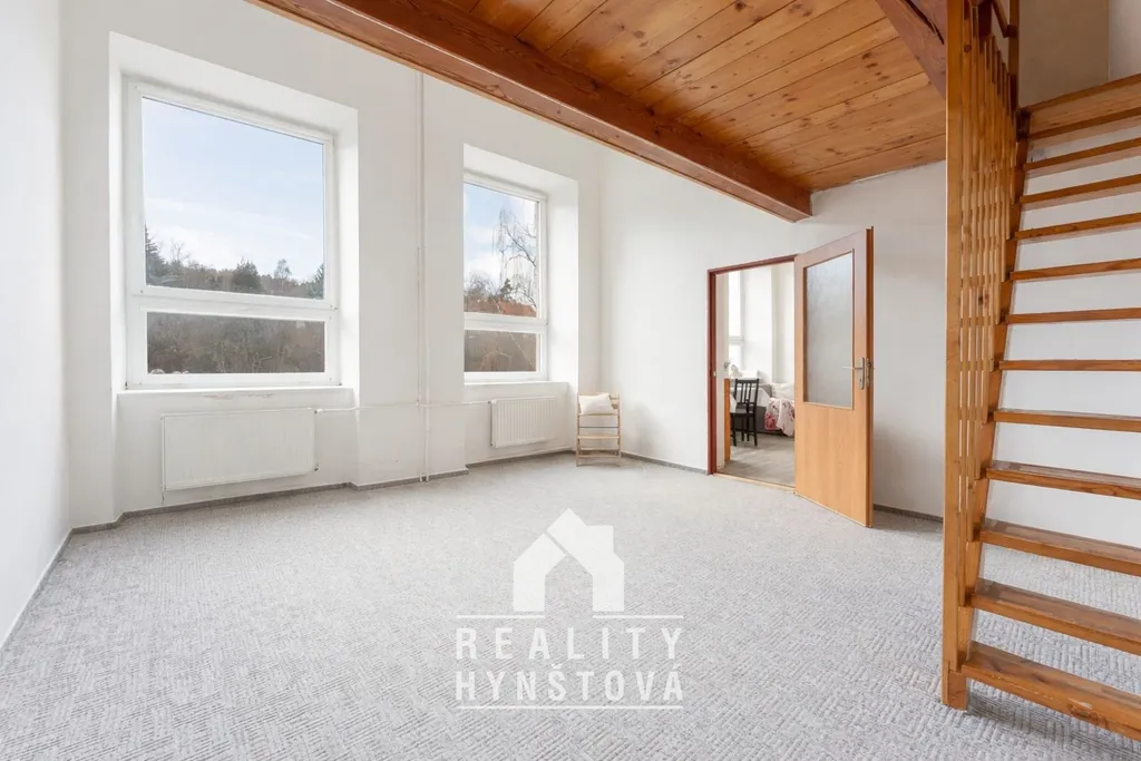 V obývacím pokoji najdete i menší mezipatro – ideální místo na relax po práci, pro čtení nebo tvoření.
