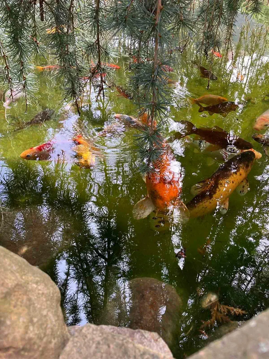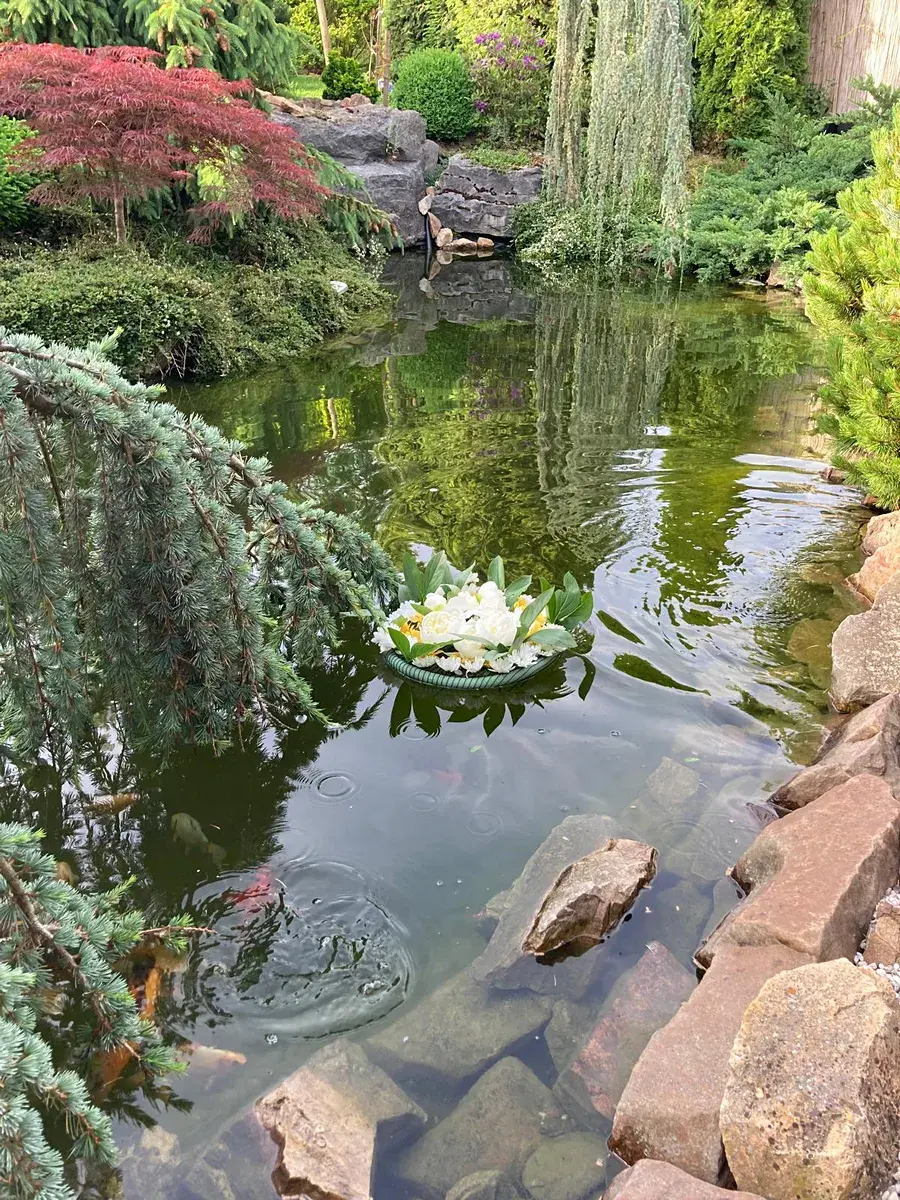 • Japonská zahrada se vzrostlou zelení, jezírkem s koi kapry, vodopádem a exotickými dřevinami;