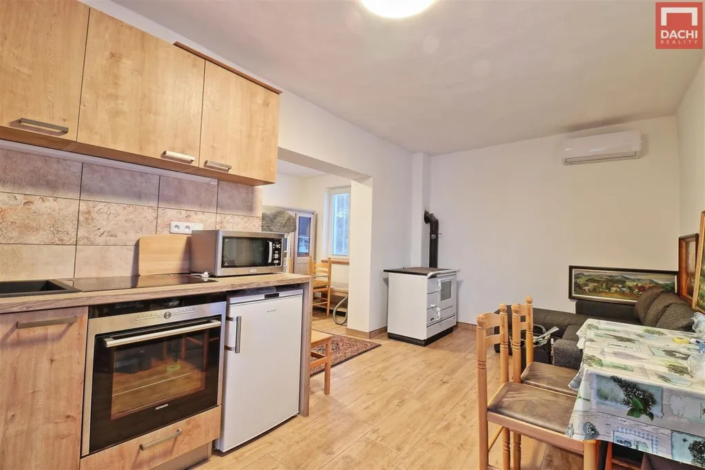 Nabízíme k prodeji zděnou chatu po celkové rekonstrukci, dispozičně řešenou jako 2+kk. Chata se nachází na pozemku o celkové výměře 2400m, mezi obcemi Tršice a Doloplazy. Chata disponuje podsklepenou terasou, dále je s obytným, vybaveným přízemím, bez podkroví. V hlavním pokoji se nachází zánovní kuchyňská linka (2024) se spotřebiči, sporák na tuhá paliva. Ve druhém, průchozím pokoji je pak prostor na spaní. V koupelně je sprchový kout, splachovací WC, elektrický bojler (80l), umyvadlo. Okna jsou plastová tříkomorová, podlahy jsou keramická dlažba. Topení zajišťují kamna na tuhá paliva, či klimatizace. Chata je napojena na 20m hlubokou vrtanou studnu s pitnou vodou. Pozemek je z větší části oplocen, nemovitost pod alarmem s kamerami, Wifi. Příjezd k chatě je po nezpevněné polní komunikaci, jedná se o klidnou a tichou lokalitu, nejde o chatovou oblast a územní plán obce nepočítá v blízkosti se žádnou výstavbou. V blízkosti se nachází rybník pro sportovní rybolov.