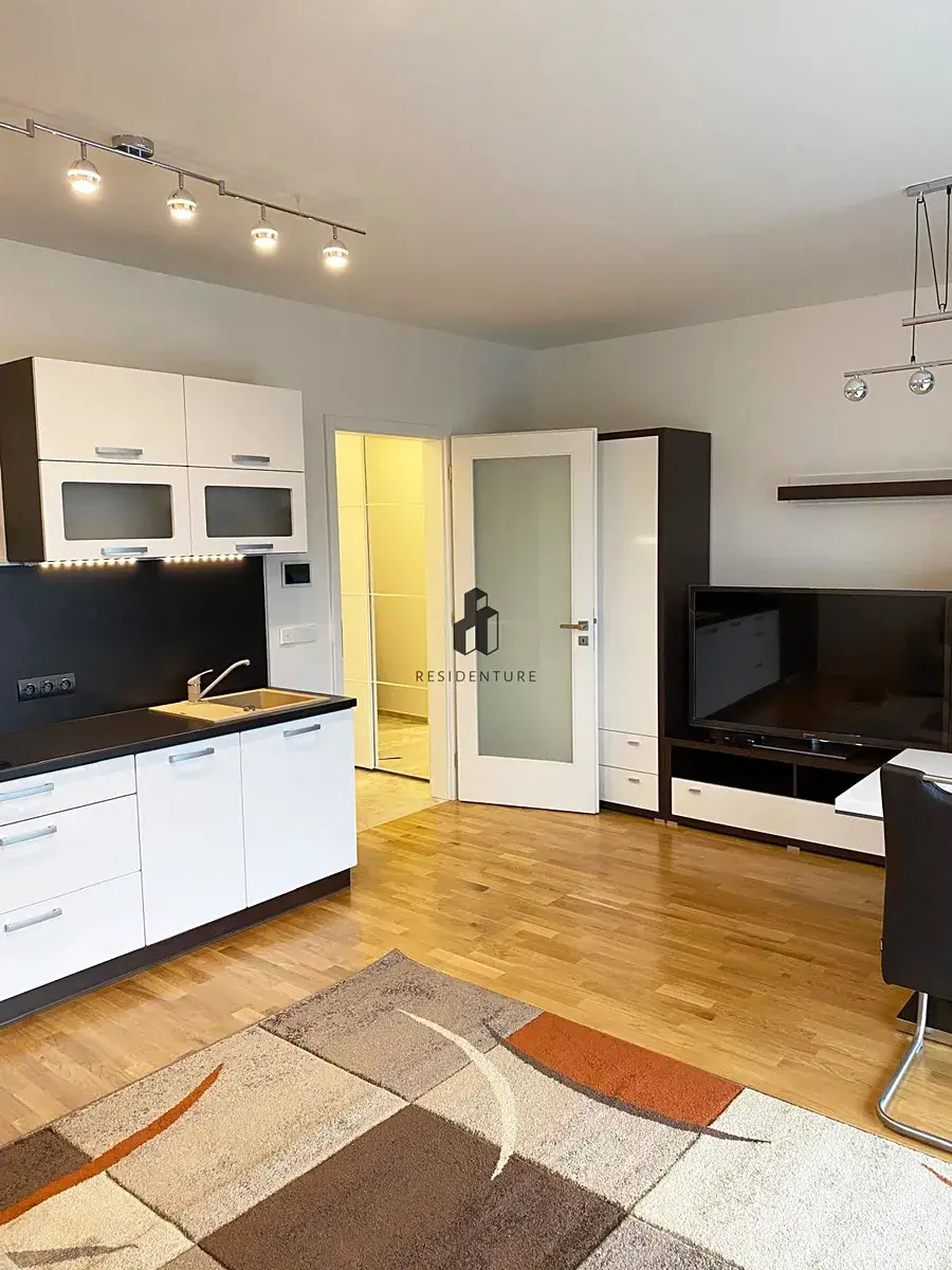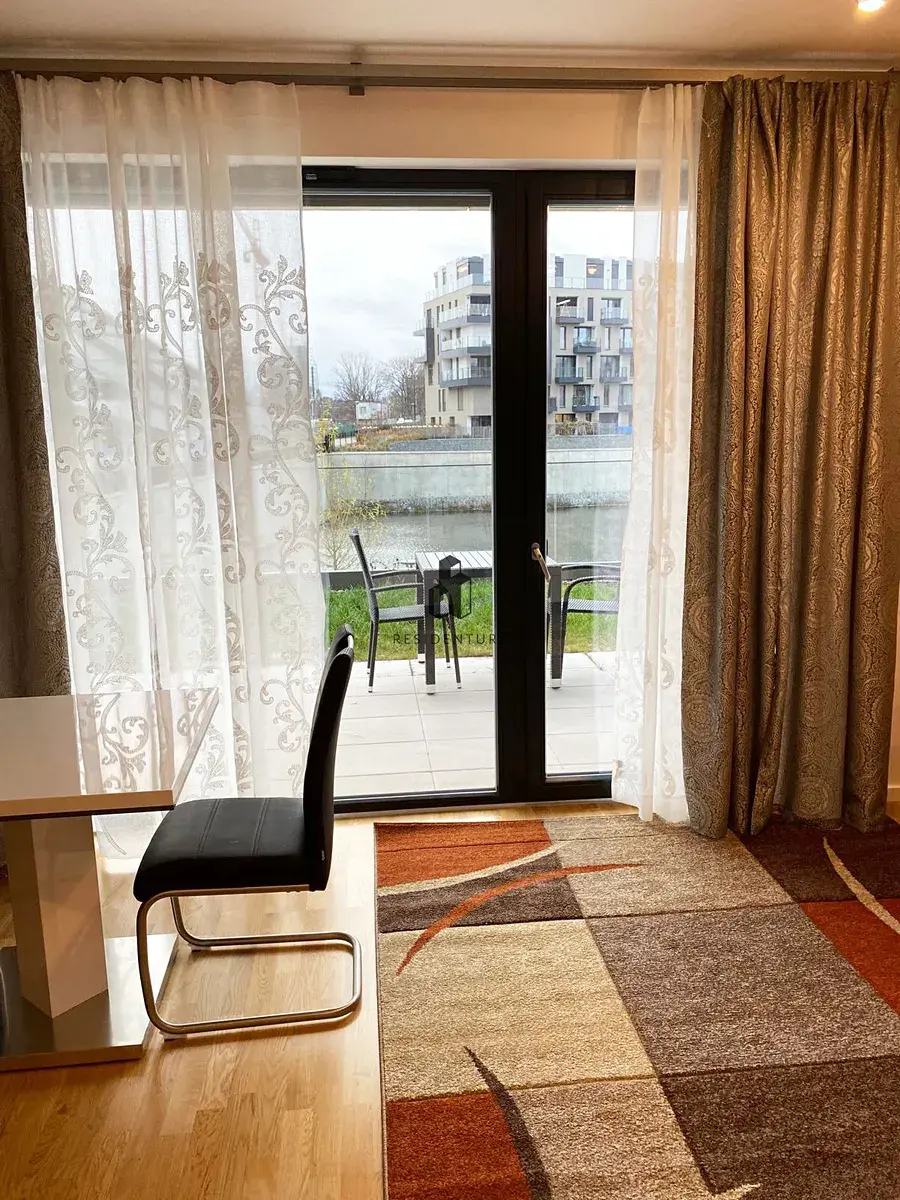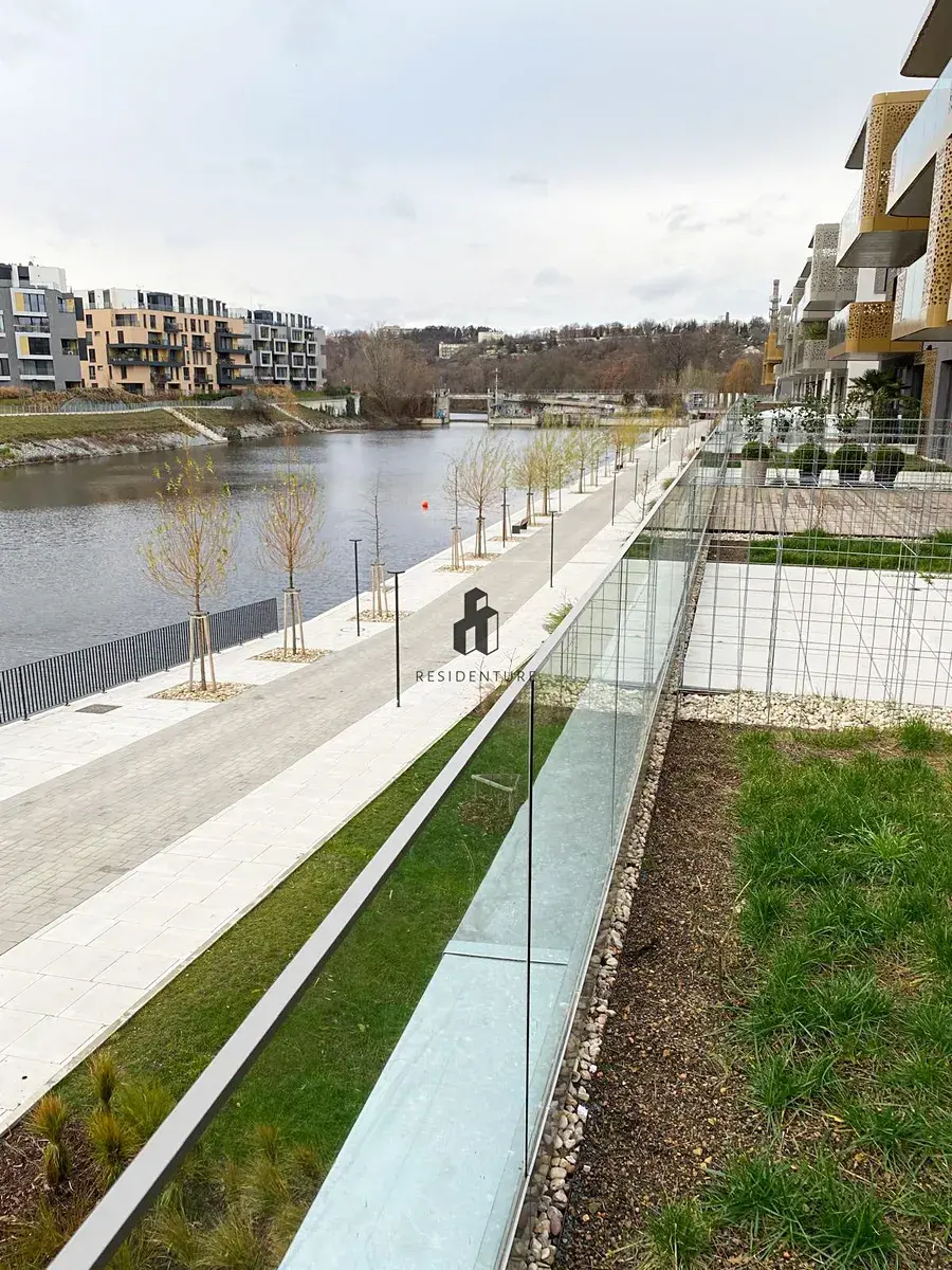 „Residenture“ ve zastoupení majitele si dovoluje nabídnout k pronájmu byt 1+kk o rozloze 32 m² s útulnou zahradou s výhledem do řeky, který se nachází ve přízemí prestižního rezidenčního projektu River Watch (DOCK) v ulici Smrčkova, Praha 8 – Libeň.