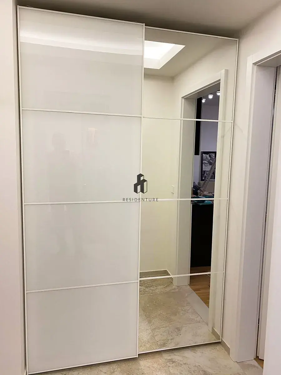 Byt je proveden ve vysokém standardu – interiér tvoří dřevěné podlahy, velkoformátová francouzská okna zajišťující dostatek denního světla a bezpečnostní vstupní dveře. V jednotce je kompletní vybavení: kuchyňská linka se zabudovanými spotřebiči (včetně myčky), prostorné skříně v předsíni, rozkládací sedačka, jídelní stůl a pračka.