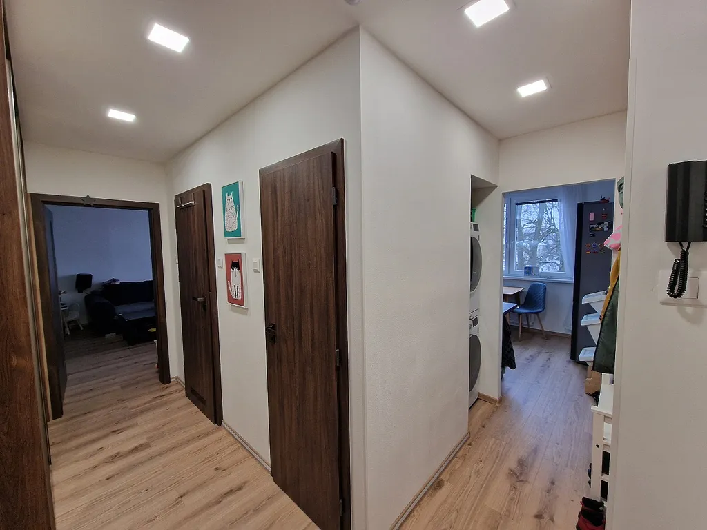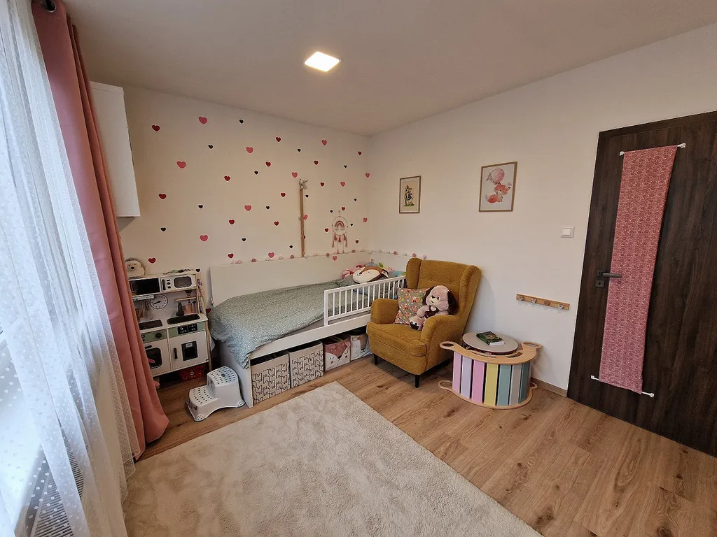 Jednotka je po kompletní rekonstrukci před čtyřmi lety, v r. 2025 byla nainstalována nová plastová okna s trojskly. Prodává se z důvodu stěhování do rodinného domu. Výhodou jsou prostorné místnosti, lodžie, dále příslušenství v podobě sklepa, ½ komory na patře a podílu na společné kočárkárně. Bytový dům je zcela bez dluhů, není zde výtah. Náklady na bydlení jsou ca 5.500,-Kč + elektřina (pro 4 člennou rodinu).