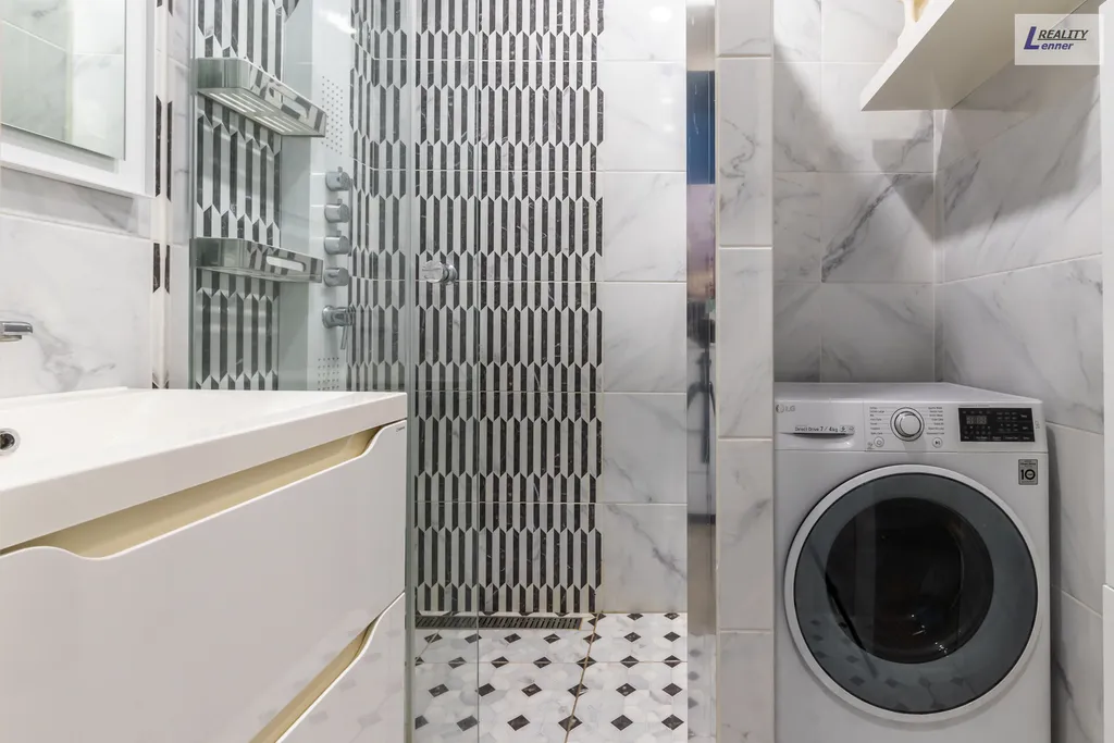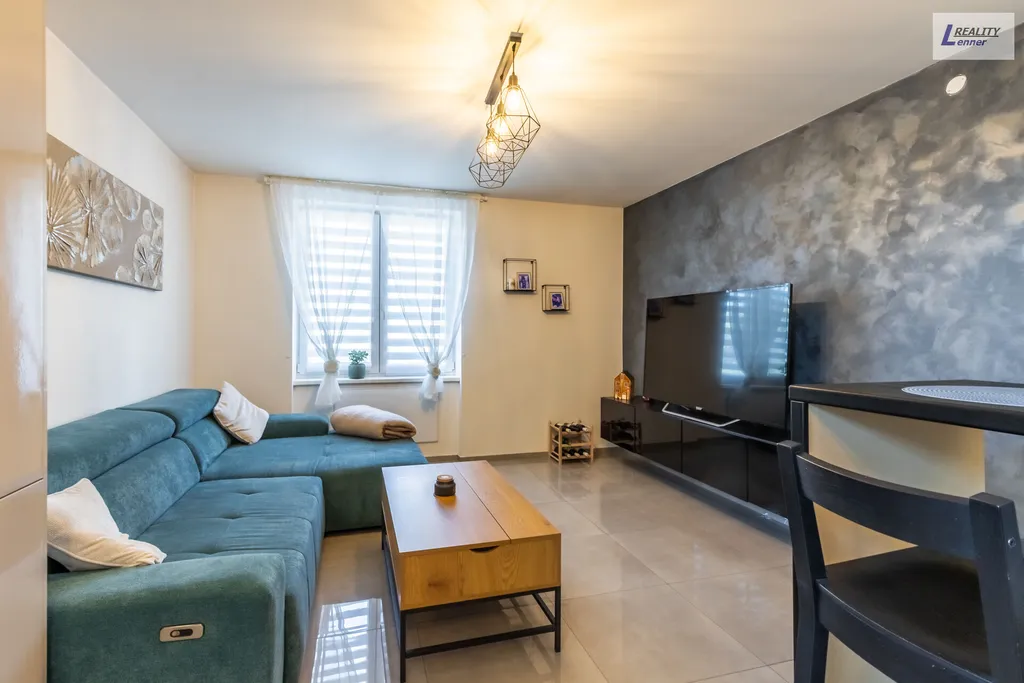V bytě po nákladné a velmi zdařilé rekonstrukci jsou: plastová okna vč. okenních rolet, kvalitní kuch. linka vč. spotřebičů (el. horkovzdušná trouba, mikrovlnná trouba, digestoř, myčka, indukční varná deska, vestavná kombinovaná chladnička s mrazákem), v obývacím pokoji zánovní sedací souprava, konferenční stolek, obývací stěna, TV. V ložnici velká šatní skříň, manželská postel, stolek. Dále sádrokartonové podhledy, převážně úsporné LED osvětlení, podlahy v celém bytě velkoformátová luxusní dlažba, rozvody el. v mědi, novější jističe, zděné jádro, v koupelně a na WC luxusní designové obklady, voda a dopady v plastu, interiérové dveře vč. zárubní, vytápění zajišťují infrapanely, možnost internetu a kabelové TV.