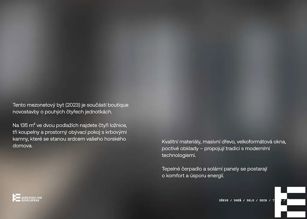 Tento výjimečný mezonetový byt o dispozici 5+kk se nachází v butikové novostavbě pouhých čtyř jednotek, přímo naproti hlavnímu lyžařskému svahu v Peci pod Sněžkou.
