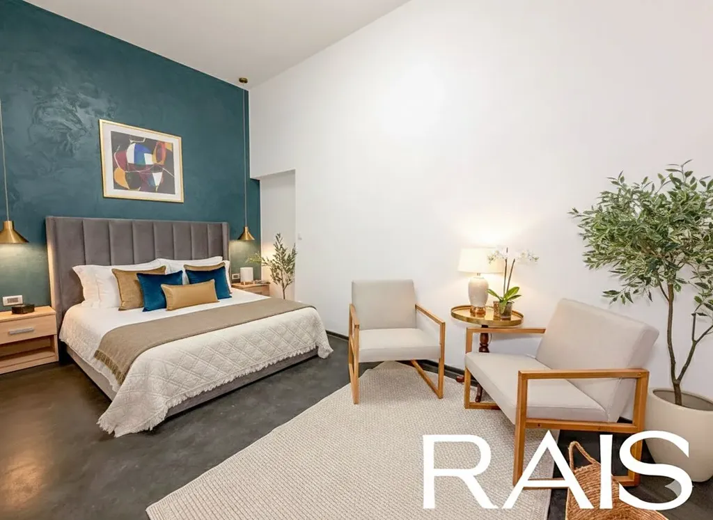 Ateliér je umístěn ve zvýšeném přízemí, což zajišťuje příjemné soukromí a zároveň okamžitý kontakt s pulzujícím městským životem. Hlavní místnost je připravena na instalaci kuchyně, zatímco druhá plnohodnotná místnost s oknem a přímým vstupem na terasu nabízí variabilní využití – může sloužit jako ložnice, pracovna, salonní místnost, konzultační prostor či jídelna propojená s venkovní zónou. Koupelna odpovídá současným standardům a interiér je řešen čistě, funkčně a s ohledem na praktické využití. Dům je vybaven vlastní plynovou kotelnou, což zajišťuje efektivní a spolehlivé vytápění.
