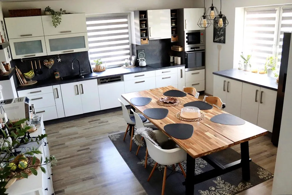 velká kuchyně s jídelnou navazující na útulný obývací pokoj