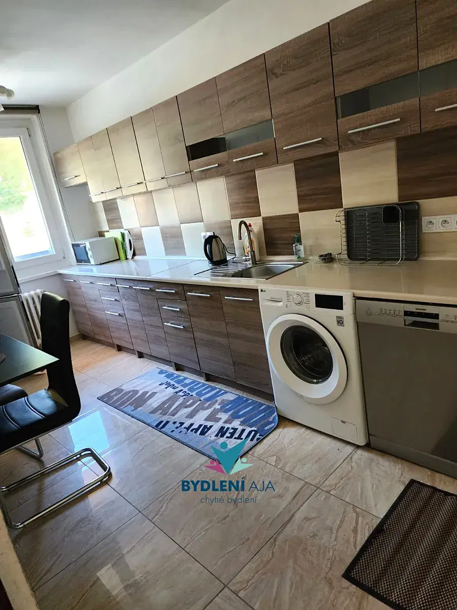 Byt má užitnou plochu 73 m² a dispozičně nabízí prostorný obývací pokoj s kuchyňským koutem, dvě ložnice, koupelnu, samostatné WC a lodžii. Byt je po rekonstrukci, ve velmi dobrém stavu a je zcela a kompletně zařízený, včetně nábytku a spotřebičů. Je připraven k pohodlnému bydlení bez nutnosti dalších investic.