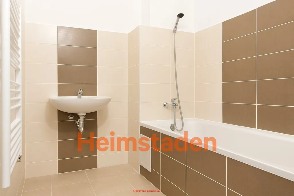 Koupelna prošla kompletní rekonstrukcí a nabízí nový obklad, dlažbu, vanu, žebříkové topení, umyvadlo a WC kombi. Celkově působí byt velmi čistě, svěže a slunně, což přispívá k příjemné atmosféře bydlení.