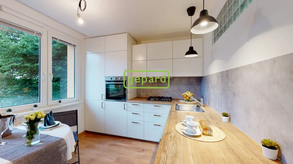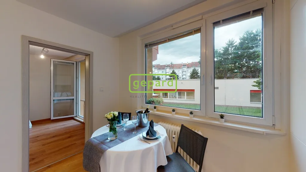 Pronájem zrekonstruovaného bytu o dispozici 1+1 se zasklenou lodžií v 1.patře menšího panelového domu v Brně - Bystrci na ulici Laštůvkova. Byt je nezařízený ( na fotografiích jsou dekorace), pouze v kuchyni je kuchyňská linka s vestavěnými spotřebiči ( lednice s mrazákem, myčka, plynová varná deska, elektrická trouba, digestoř, pračka) a v pokoji je vestavěná skříň. K bytu náleží sklepní kóje v suterénu domu.