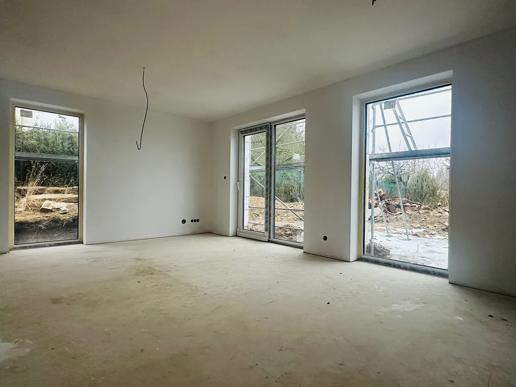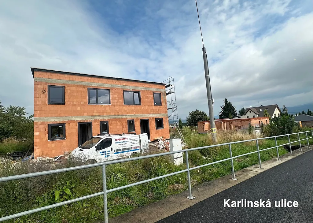 Prodej nového rodinného domu – dispozice 4+kk, venkovní terasa / možnost dodatečné úpravy na 5+kk / s výhledem na Ještěd. Jedná se o část - ideální pravou polovinu dvojdomku v krásné a vyhledávané liberecké lokalitě KARLINKY - necelé 3 km pod Ještědem. Polovina zděného domu, určená k prodeji bude mít zcela oddělený pozemek o velikosti cca 680 m²; kdy přední část pozemku bude určena pro parking - zpevněná plocha pro tři osobní auta, na jejíž hranici teče Ještědský potok; zadní část bude klidová, rovinná slunná zahrada s výhledem do volných luk / navazující pozemky nejsou určeny k budoucí zástavbě.