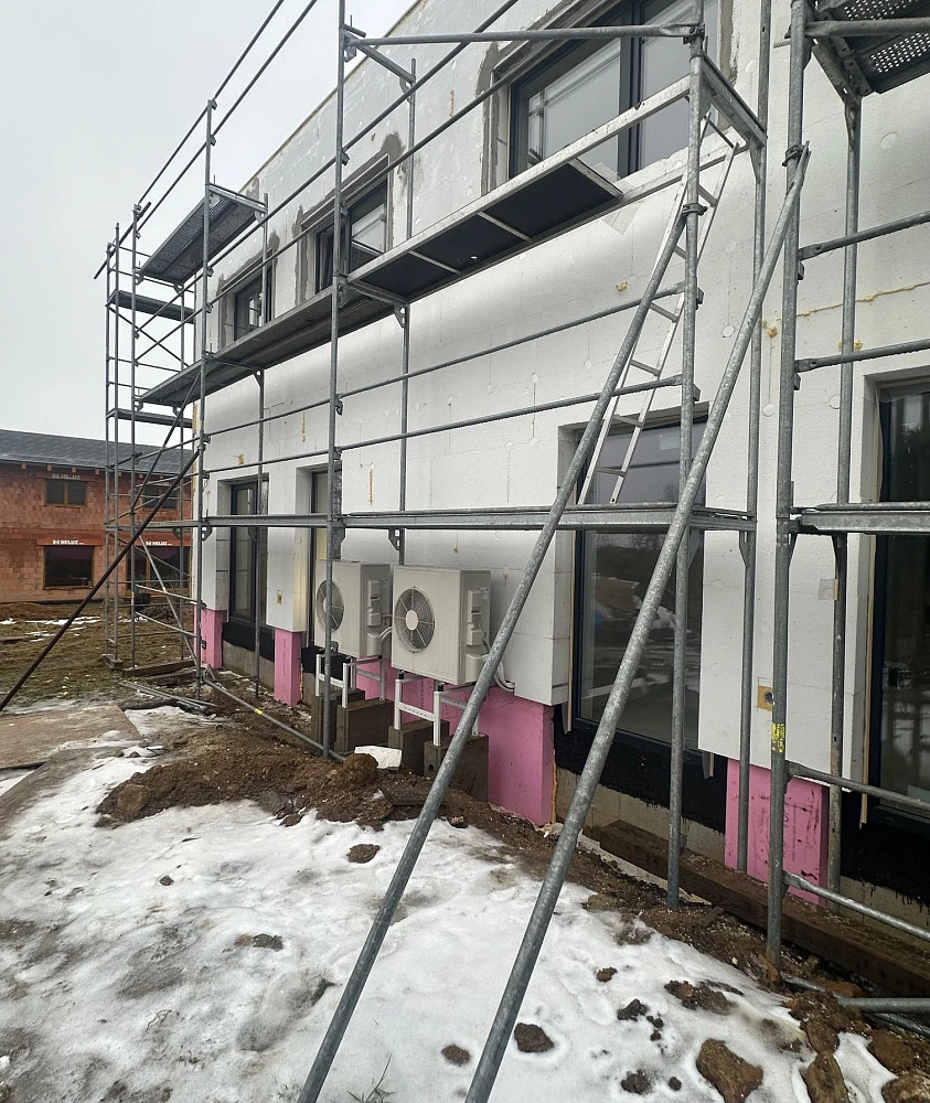 Každá část dvojdomku bude vytápěna zvlášť tepelným čerpadlem vzduch-voda – 13 kW s možností doplňkového zdroje pro vytápění – krbová kamna. Zdrojem pro teplou užitkovou vodu bude pro každou část dvojdomku tepelné čerpadlo, boiler kombinovaný s elektrickou patronou. Dům bude napojen na stávající vodovodní řad, ČOV a napojení na splaškovou kanalizací.