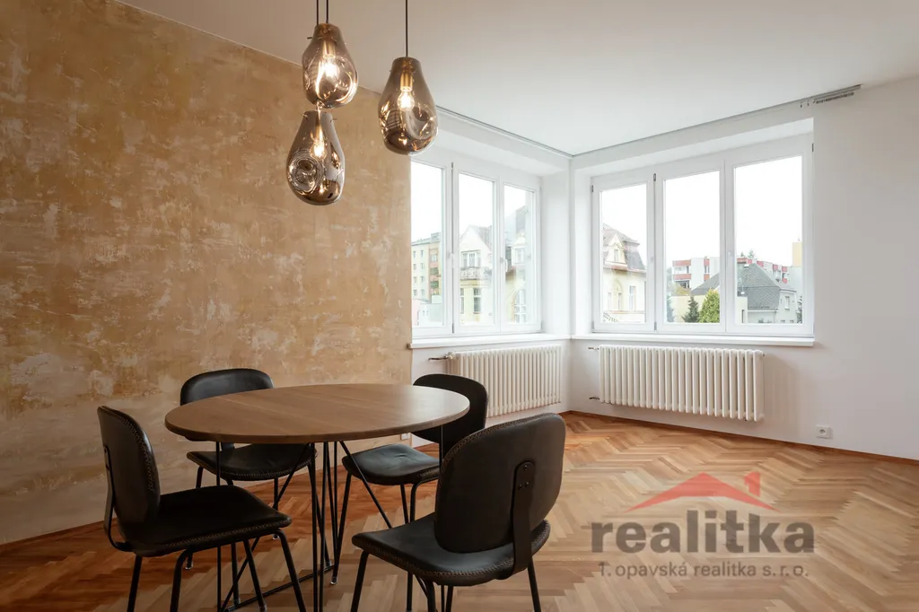 Nabízíme k pronájmu výjimečný byt o dispozici 3+1 a ploše 100 m², který se nachází v 1. patře udržovaného cihlového domu bez výtahu na prestižní adrese ulice Jurečkova v Opavě. Byt prošel kompletní a velmi zdařilou rekonstrukcí s důrazem na kvalitu materiálů, moderní technologie a nadčasový design. Nábytek na fotografiích je součástí nájmu.