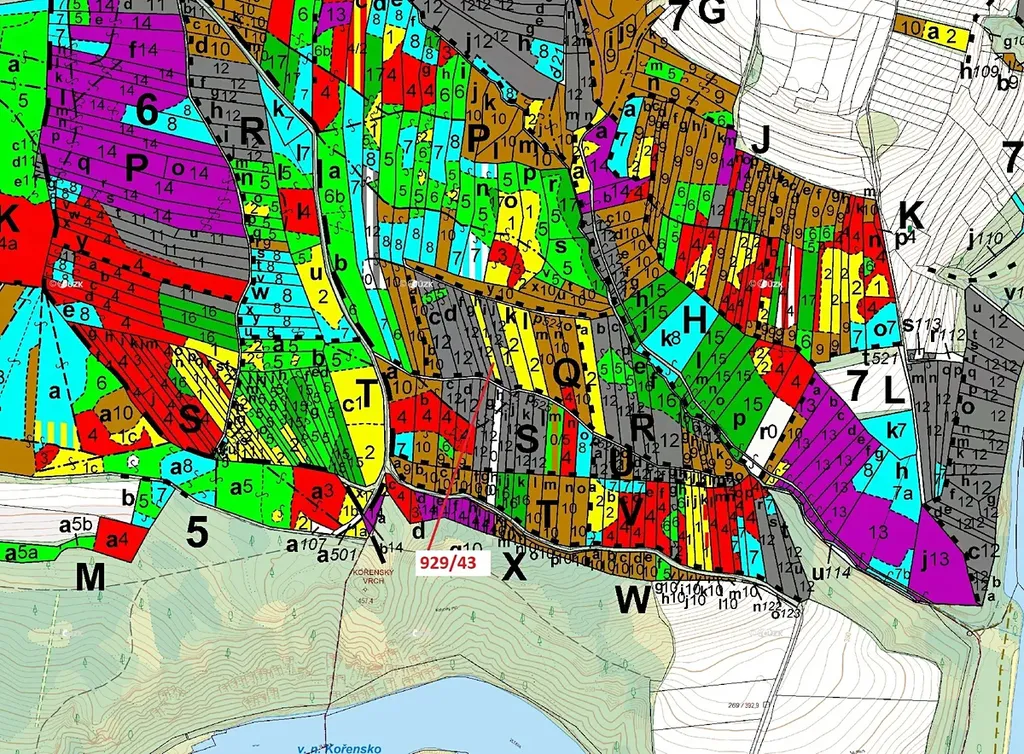 Lesní pozemek o výměře 1258 m2, parcelní číslo 929/43, podíl 1/1, katastrální území Hosty, obec Hosty, obec s rozšířenou působností Týn nad Vltavou, okres České Budějovice, Jihočeský kraj.