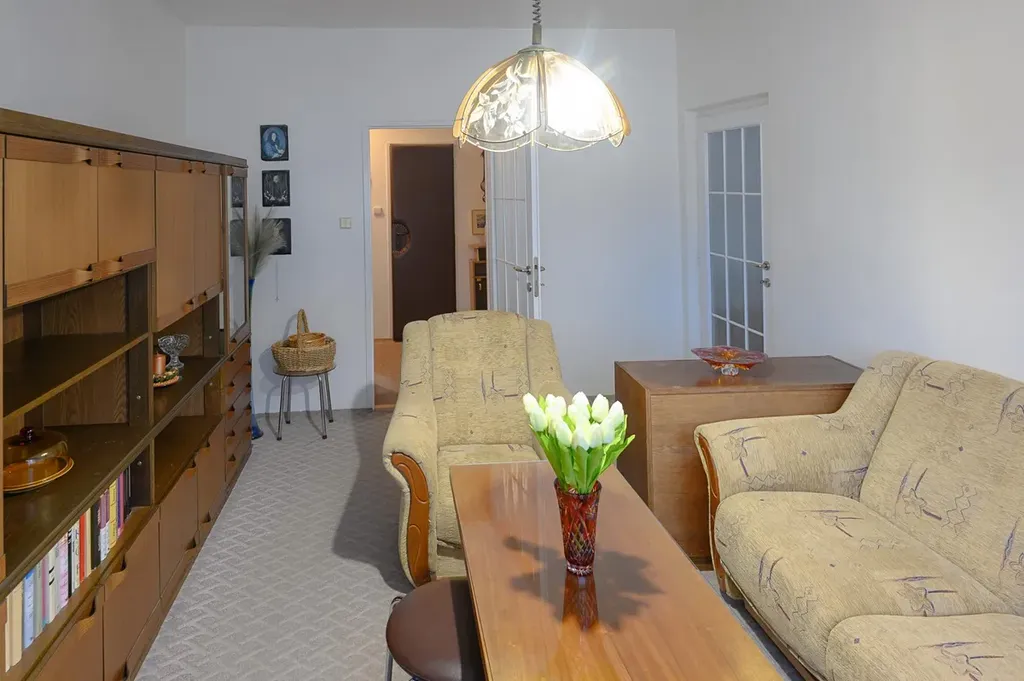 Byt se nachází ve druhém nadzemním podlaží panelového domu, postaveného začátkem 60-tých let minulého století. Byt sice nemá balkon, zato má podíl na krytu civilní obrany, který se nachází ve skleních prostorách domu.