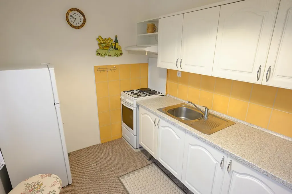Byt je udržovaný, po celou dobu v péči jedné rodiny. Před cca 10lety došlo k rekonstrukci koupelny a WC, vnitřních dveří. Kuchyně je situovaná směrem k řece, oba pokoje, jeden z nich je průchozí jsou do klidové zóny se vzrostlými stromy za domem.