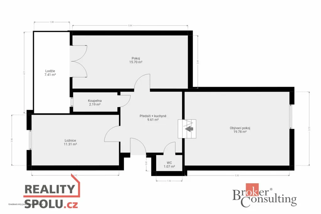 Jedno patro slouží klasicky jako prostor na spaní, druhé je řešeno velmi chytře – může fungovat jako pracovna, knihovna nebo klidová zóna (výška stropu od 150 cm do 180 cm) Ideální kombinace bydlení a home office, případně investiční využití.