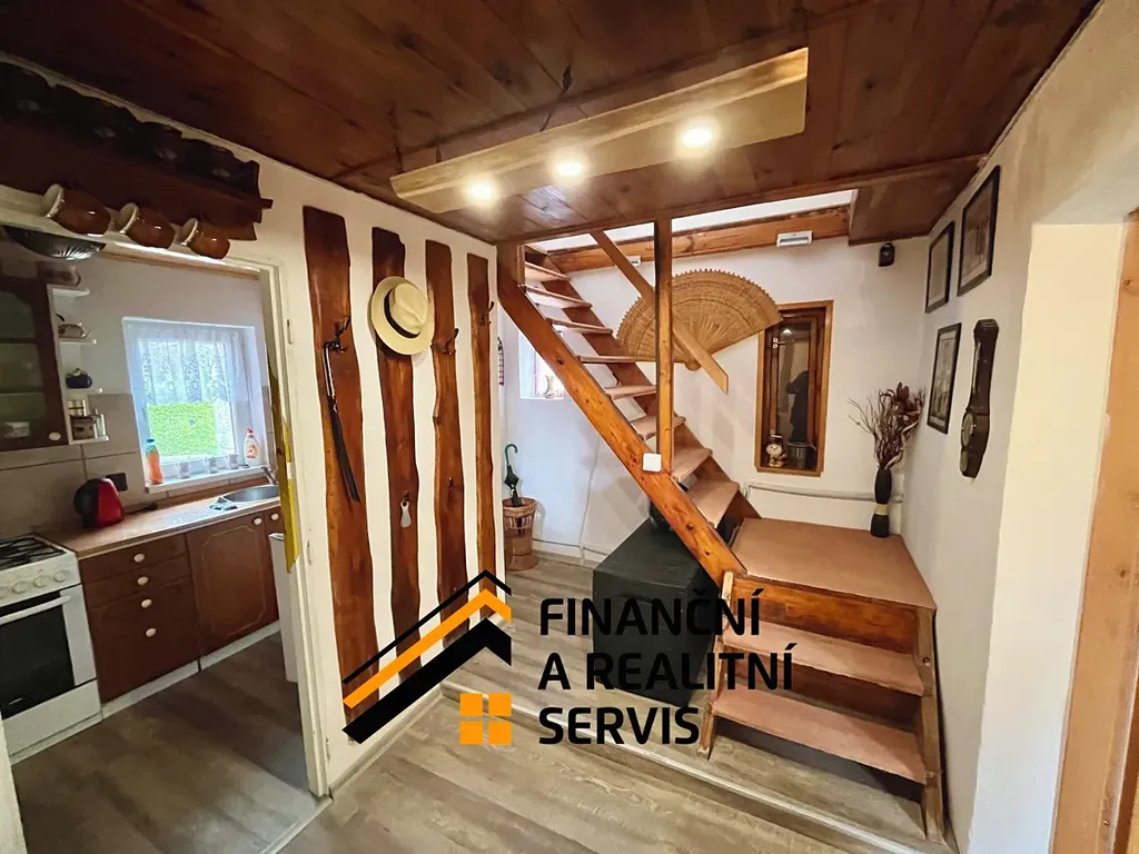 V přízemí je koupelna se sprchovým koutem, wc, kuchyň s plynovým sporákem a obývací pokoj s krbovou vložkou.