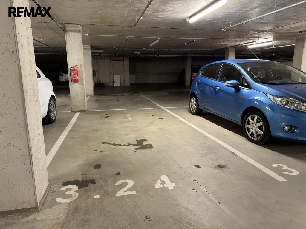 Prostor je suchý, čistý a bezpečný, vhodný pro pohodlné parkování osobního automobilu.
