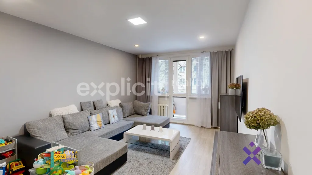 Součástí bytu je obývací pokoj, který je vybaven obývací stěnou a konferenčním stolkem. Z obývacího pokoje je vstup na zasklenou lodžii.