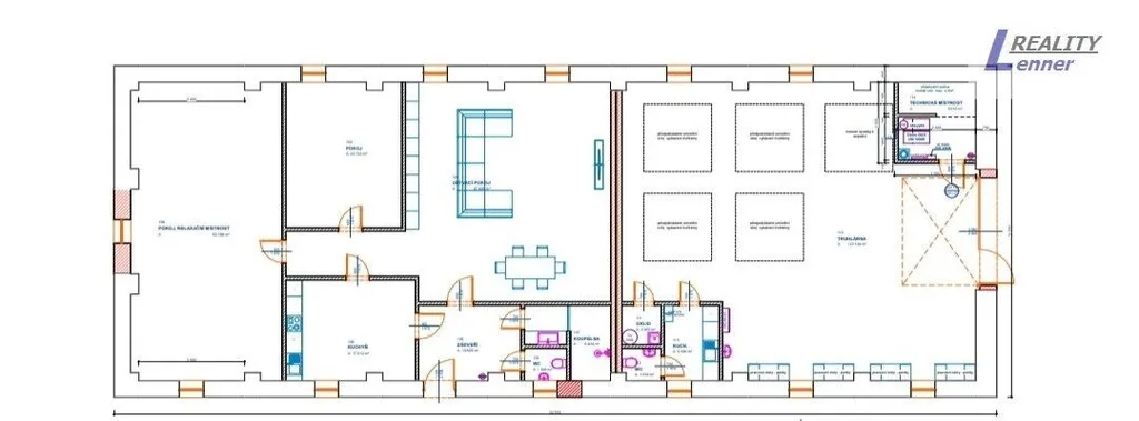 Střecha budovy je zhotovena z plechové krytiny, podlahy z leštěného betonu, určené k vysoké zátěži.