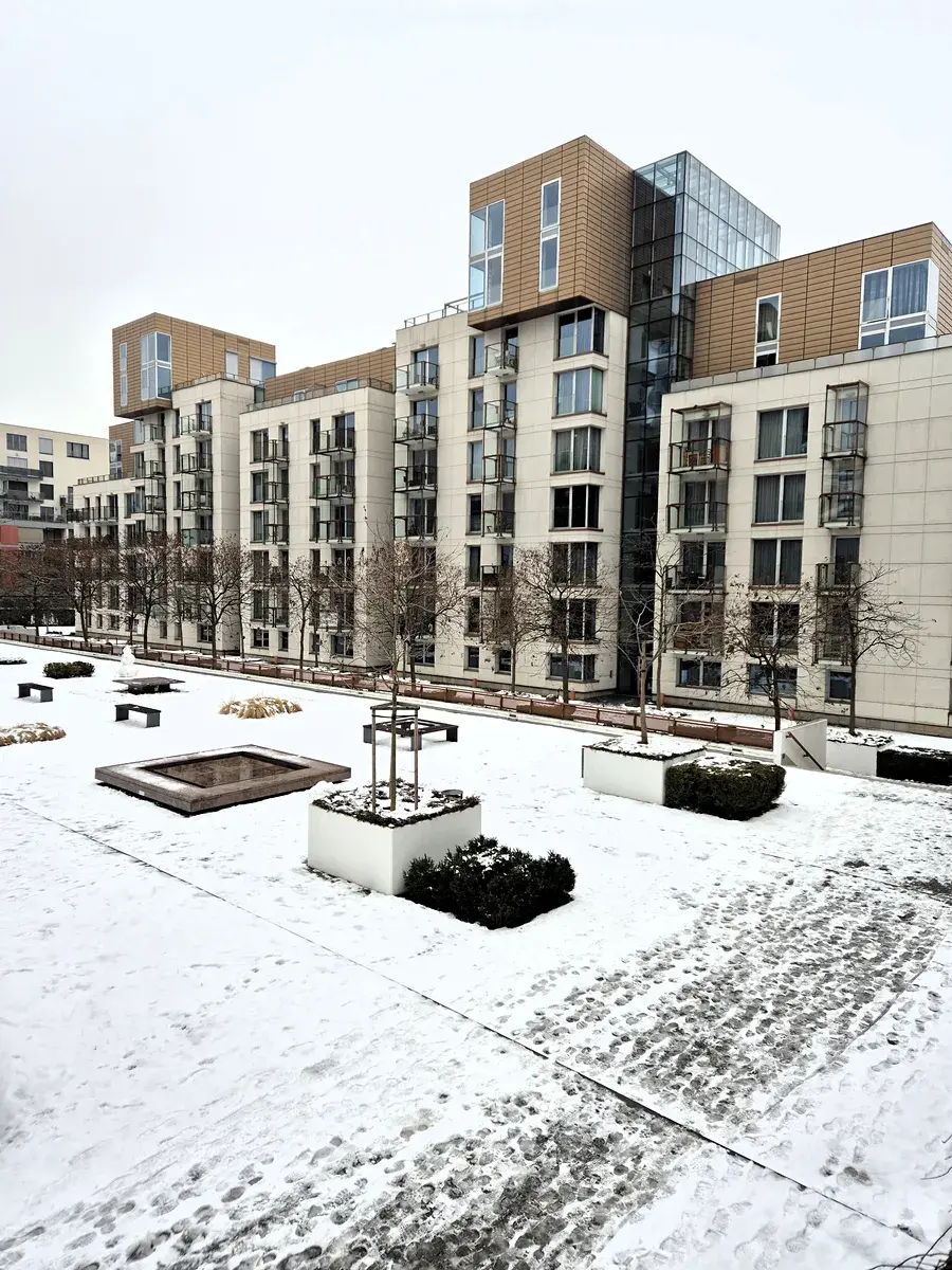 Byt je situovaný ve 2.nadzemním podlaží velice oblíbeného rezidenčního komplexu Korunní Dvůr z roku 2003 na Vinohradech, ulice Korunní 810.