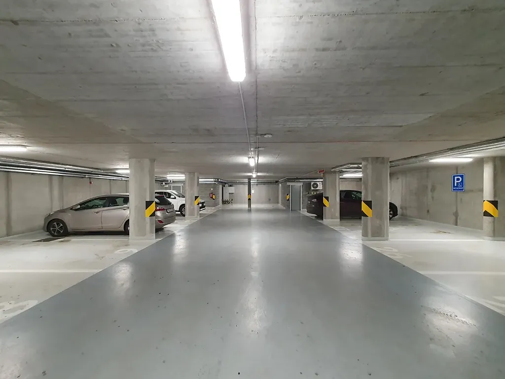 Dřevěné podlahy a velkoformátová dlažba. K bytu patří zděná sklepní koje a garážové stání.