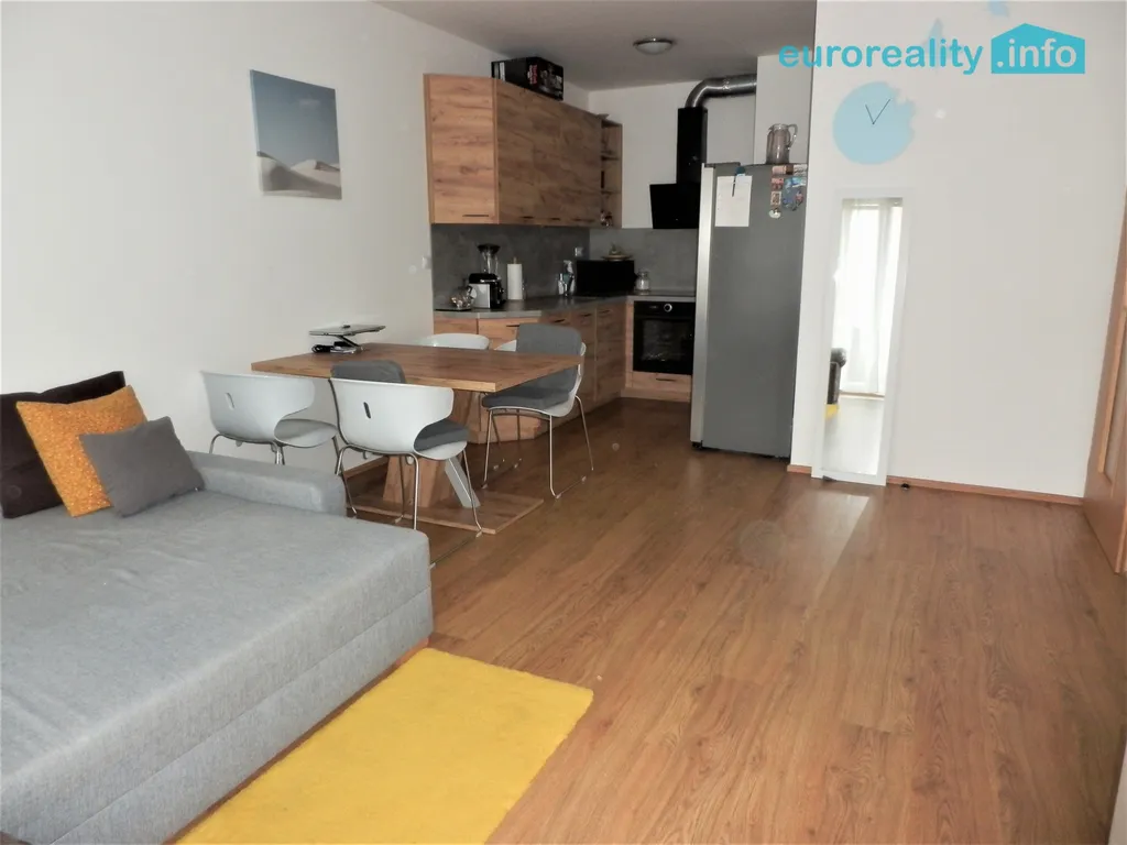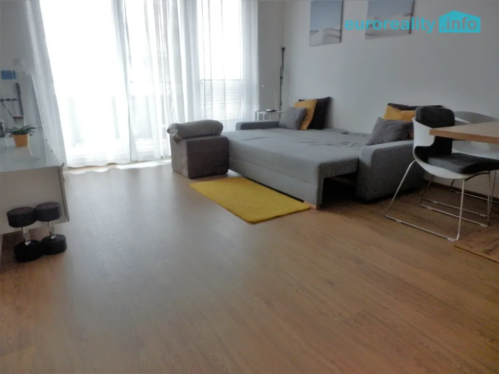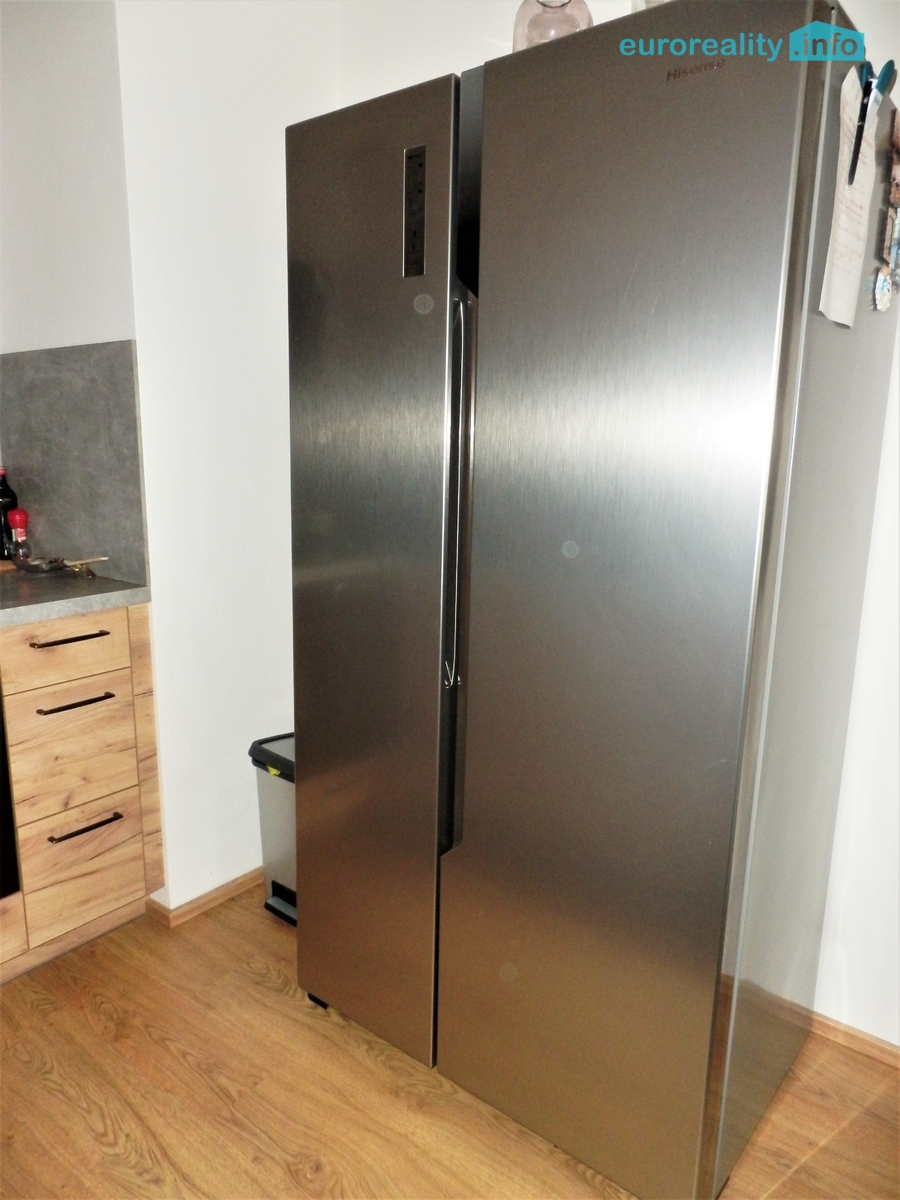 K pronájmu se byt nabízí částečně vybavený kuchyňskou linkou s vestavěnými spotřebiči: myčkou, elektrickou troubou, indukční deskou, mikrovlnkou, digestoří a lednicí s mrazákem. V kuchyni zůstává k dispozici stůl se čtyřmi židlemi, v obývacím pokoji stolek pod TV, v chodbě velká šatní skříň se zrcadlem, v koupelně police pod umývadlem, pračka, na lodžii stolek se židlemi.