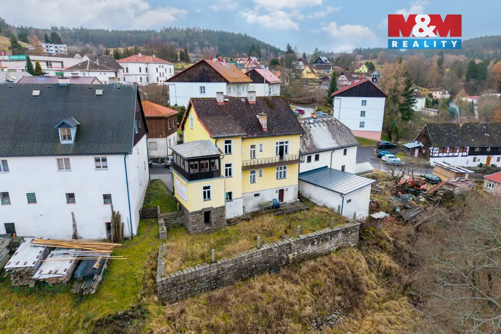 Nabízíme k prodeji bývalý penzion v centru Bečova nad Teplou, vhodný jako investiční nemovitost s okamžitým i dlouhodobým potenciálem. Dům má cca 298 m² užitné plochy, více pokojů, koupelny, sociální zázemí, sklep, garáž a další technické prostory. Součástí je zahrada cca 666 m².