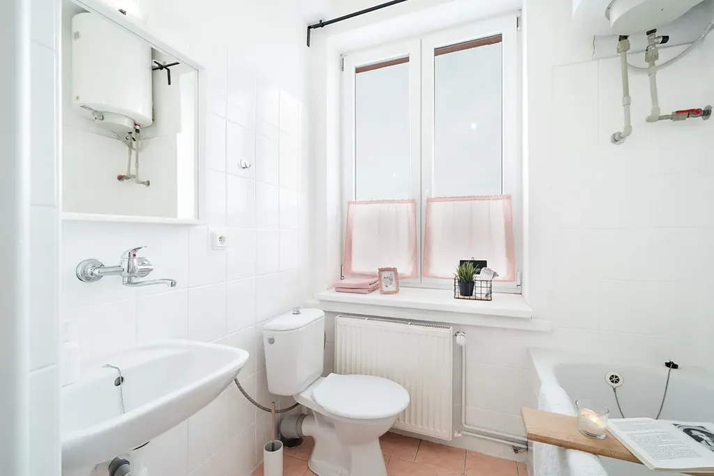 Teplo v bytě zajištuje vlastní plynový kotel, teplou vodu boiler.