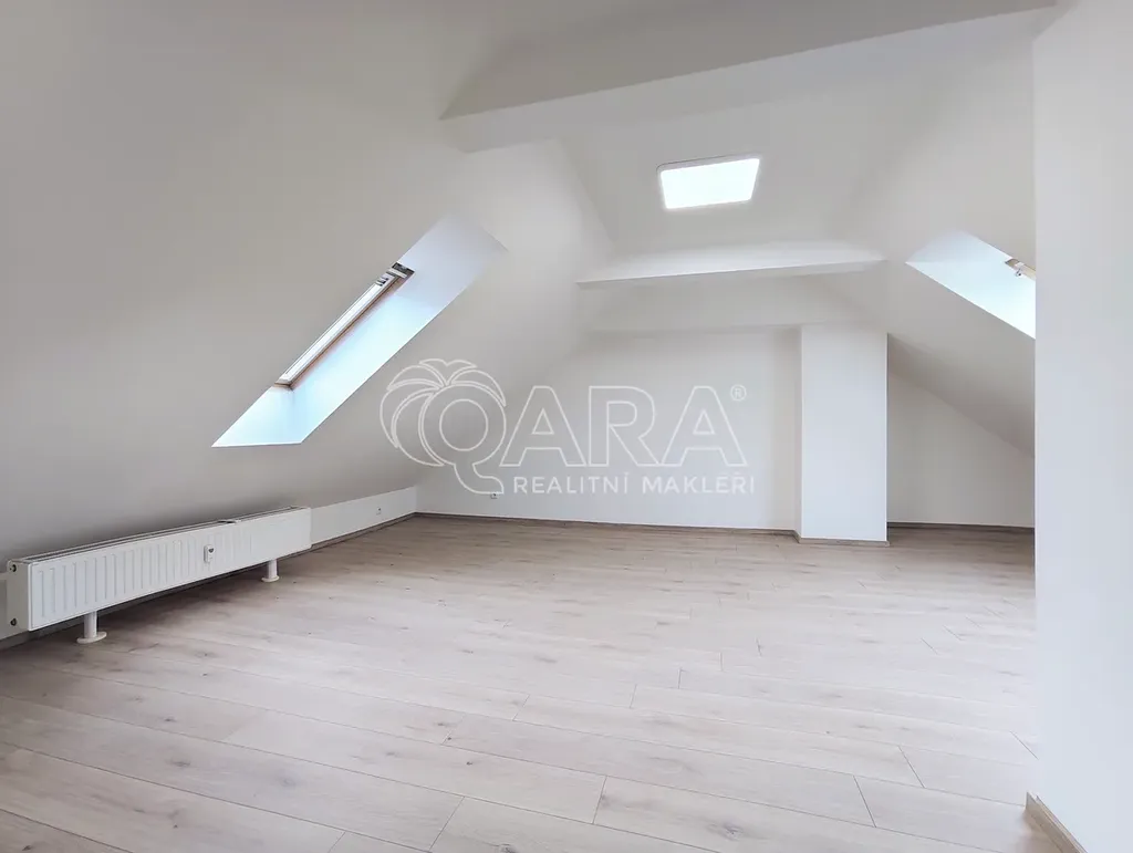 Pak je pro vás zajímavou možností pronájem mezonetového bytu dispozice 2+1 o výměře cca 69 m2, umístěného ve třetím patře cihlového domu bez výtahu v Hanusově ulici v pražské Michli. Jak vidíte z fotografií, tak se jedná o půdní vestavbu, která bytu dodává jeho charakteristické kouzlo.