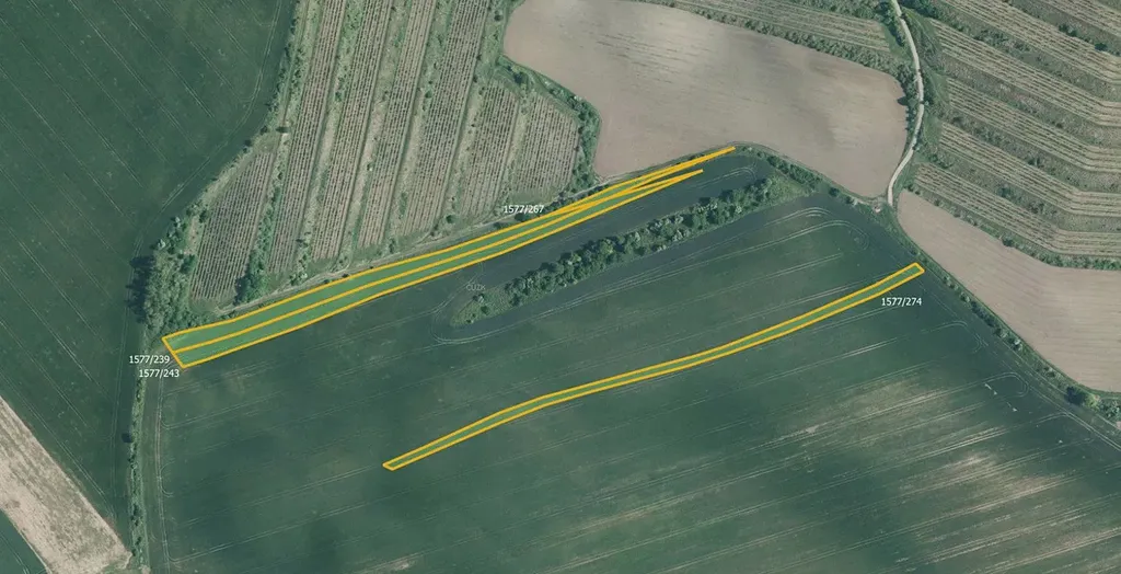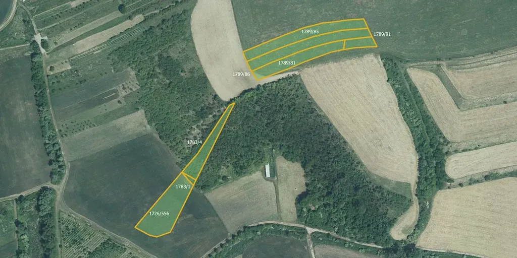 Orná půda: 1351/35, 1577/46, 1577/239, 1577/263, 1577/274, 1609/126, 1709/30, 1708/79, 1709/328, 1709/343, 1726/556, 1783/81, 1789/85, 1789/86, 1789/91, 1605/128 a