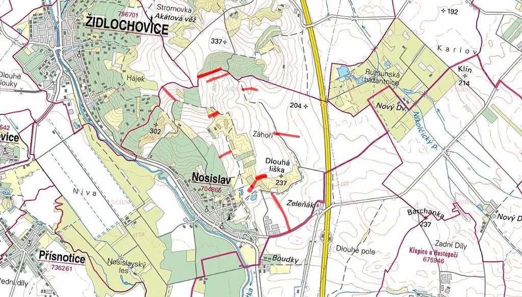 Nabízím k prodeji soubor zemědělských pozemků v katastrálním území Nosislav, okres Brno-venkov. Pozemky se nacházejí na dvou listech vlastnictví – LV 2080 a LV 965.