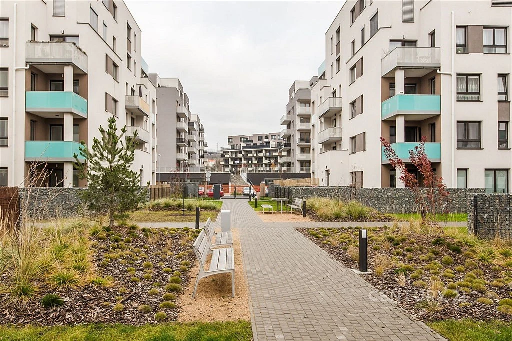 A pokud se rozhodnete lenošit, proč ne na prostorném zastřešeném balkóně? Nová zeleň pod ním a na obzoru se právě probouzí k životu a stavební činnosti v okolí domu už dávno utichly.