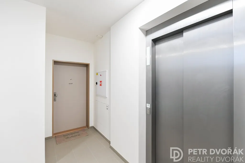 Předností bytu je prostorný balkon o výměře 10 m² s výhledem do zeleně, přístupný z obývacího pokoje prostřednictvím francouzských oken. Byt je dále doplněn o vstupní chodbu s šatní skříní.