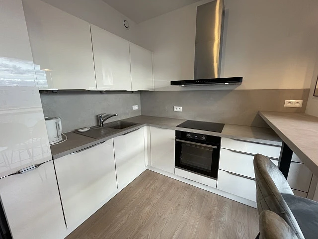 Atraktivní bydlení, v novém bytě projektu Green Port Strašnice. Byt nově zařízený, Garáž, sklep.