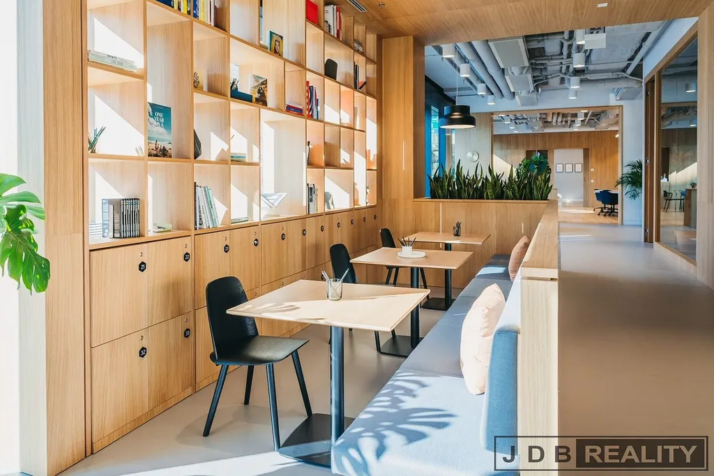 - Společné prostory, business lounge, relaxační zóny a plně vybavené kuchyňky