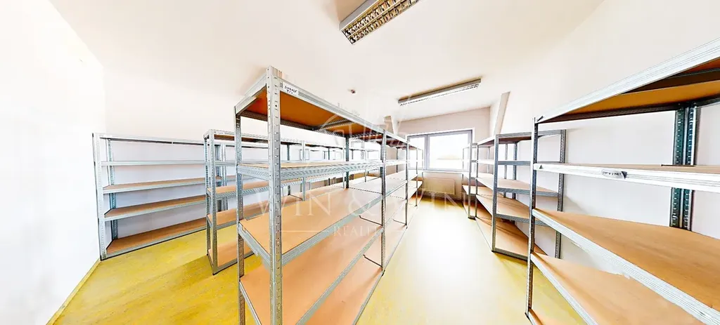 V 1 NP se nachází prostorná hala s bezbariérovým přístupem, 6 kanceláří, 3 sklady, plynová kotelna, úklidová místnost a sociální zázemí.
