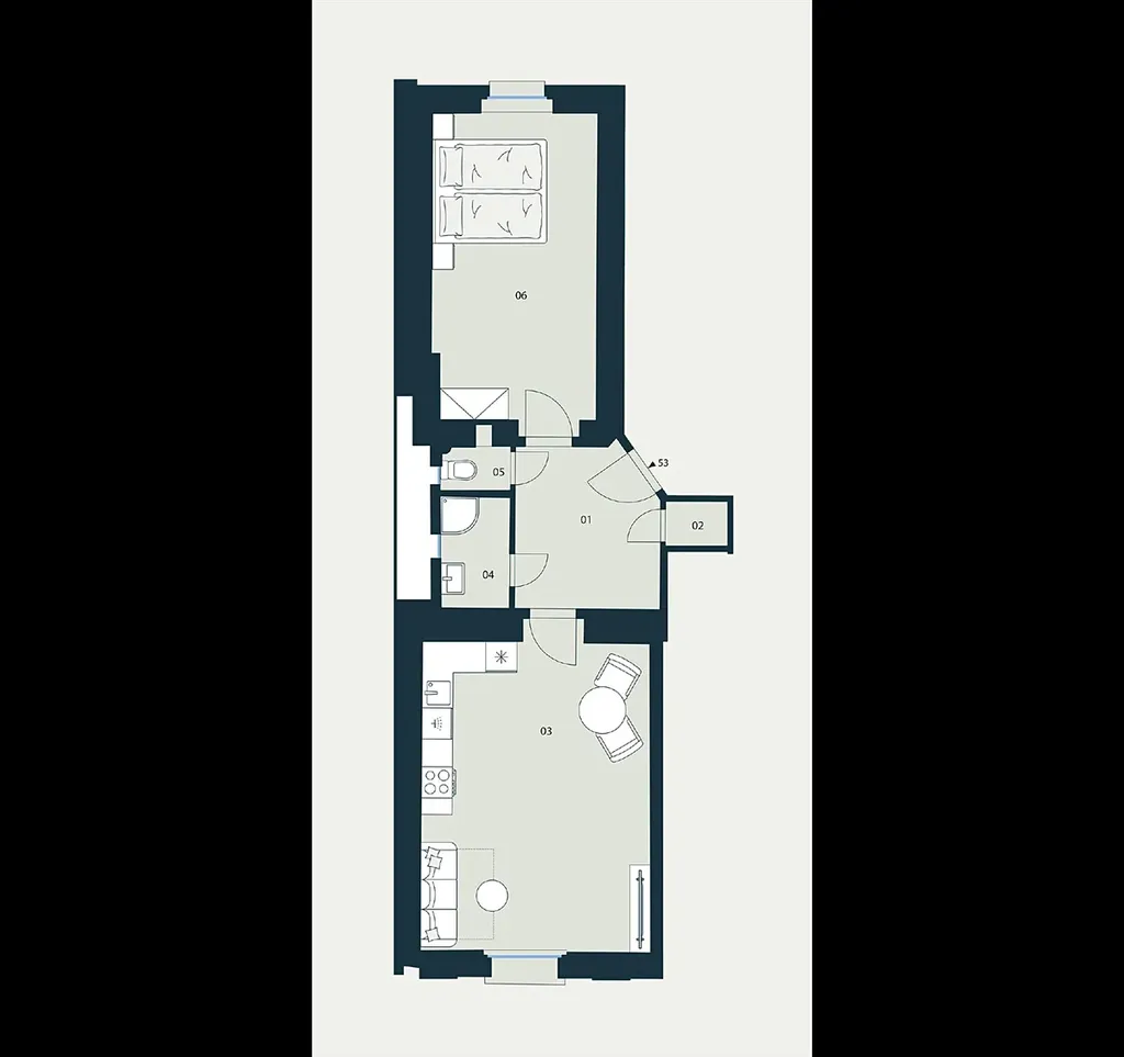 Nabízená bytová jednotka č. 53 o dispozici 2+kk a celkové ploše 58,6 m² se nachází v pečlivě zrekonstruovaném činžovním domě, v 5. nadzemním podlaží.