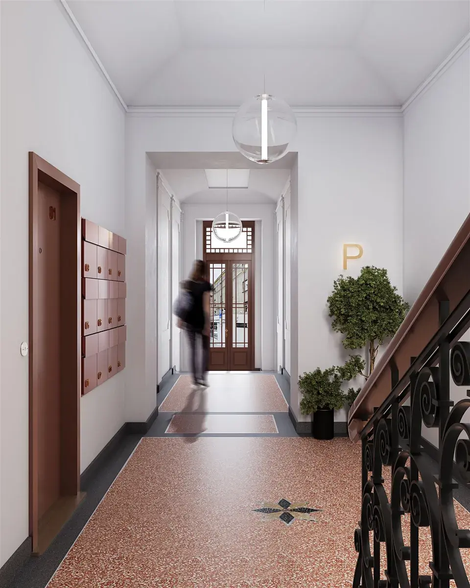 Celý dům prochází citlivou rekonstrukcí a rezidenti budou moci využívat nové společné prostory jako jsou kolárna, kočárkárna nebo klidný vnitroblok určený k odpočinku.