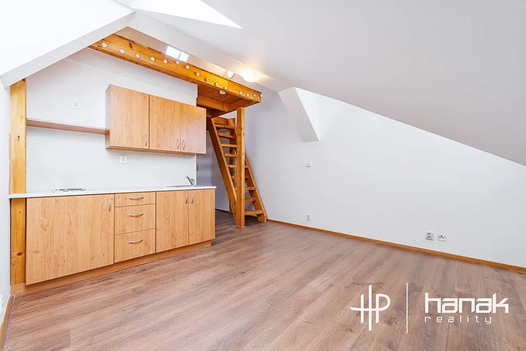 Vážení klienti, nabízíme Vám k nájmu krásný podkrovní jednotku s dispozicí 1+kk ve velmi žádané lokalitě.