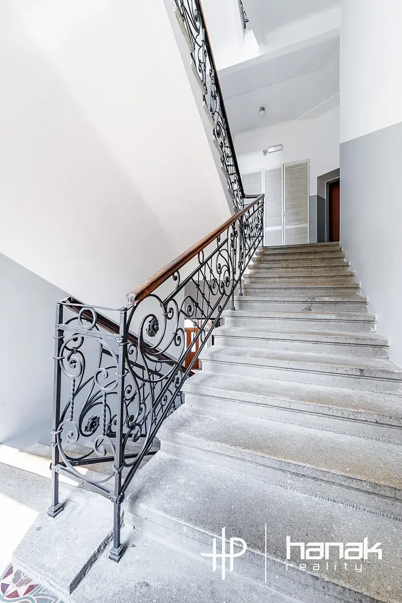 Předmětem nájmu je byt o užitné ploše 21 m², nacházející se v 5.NP cihlového historického domu, který prošel revitalizací štukové fasády, výměnou střechy a také úpravou společných prostor a krásného centrálního schodiště se zdobených vstupem. Výhodou je také velká společná kolárna a příjemný pozemek za domem pro odpočinek s výhledem do vnitrobloku se vzrostlými stromy.
