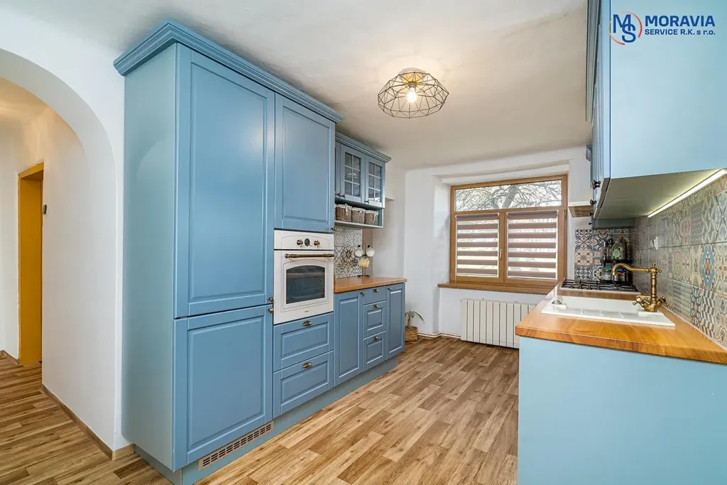 Dům je v dobrém stavu s moderní kuchyní v přízemí a možností připojení krbu v obývacím pokoji.