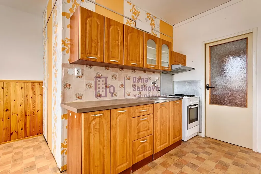 Byt je vybavený kuchyňskou linkou, plynovým sporákem, vestavěnou spíží a vestavěnou skříní v chodbě.